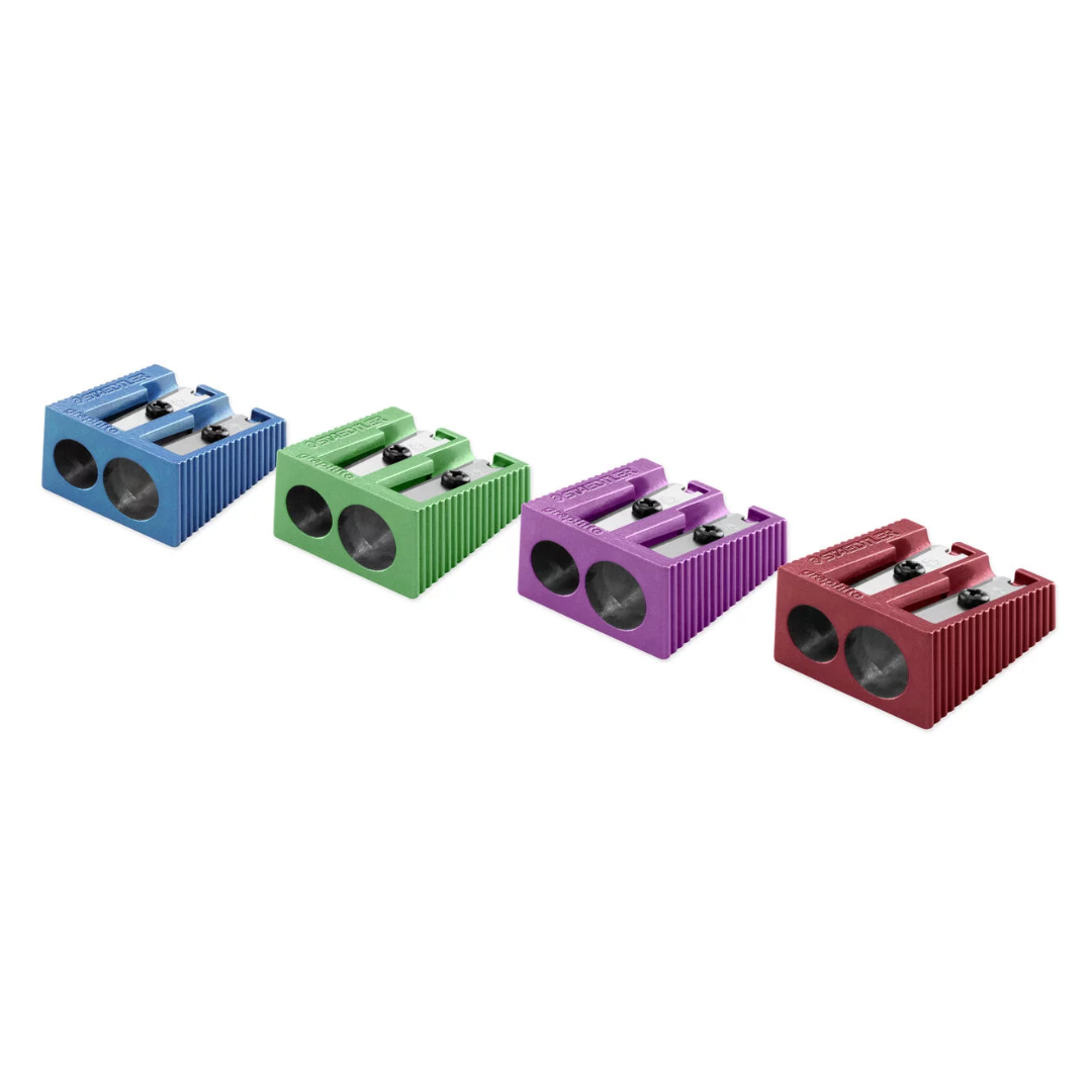 Staedtler-jev enojni kovinski šilček predstavlja zanesljivo orodje za ostrenje standardnih črnih svinčnikov. S svojim ostrim rezilom in optimalnim kotom ostrenja 23° omogoča ustvarjanje čistih in natančnih linij. Idealen je za vsakodnevno uporabo v pisarni, šoli ali domačem okolju, kjer se zahteva natančnost pri risanju ali pisanju.